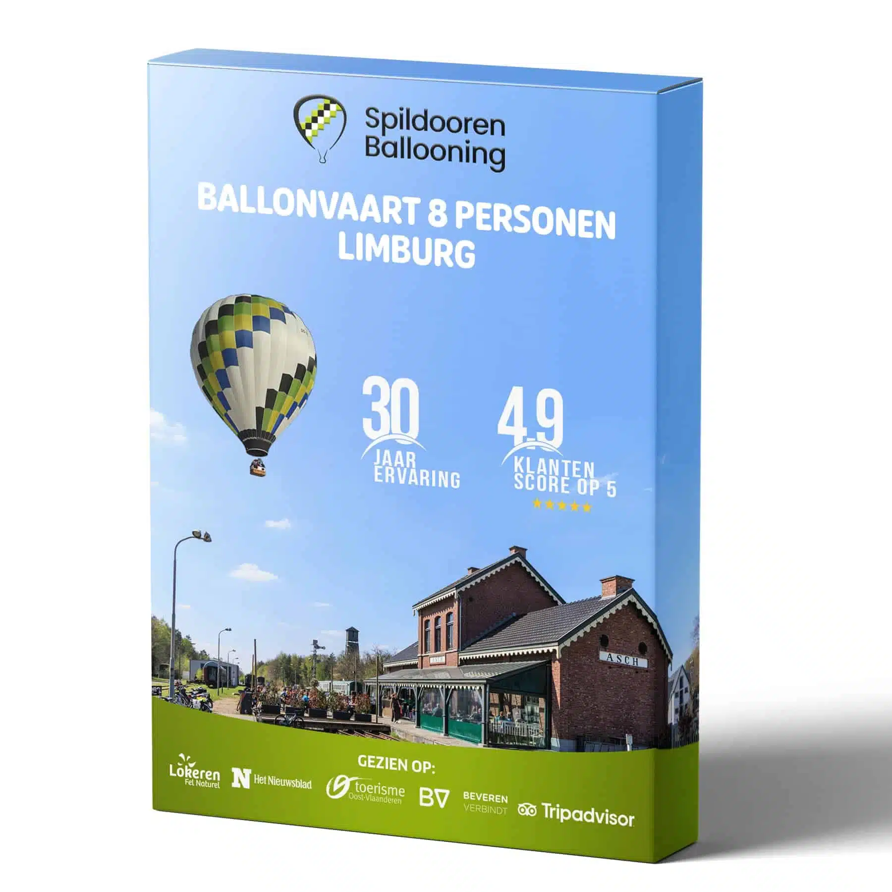 A balloon flight for 8 people from Limburg is one of the flight packages at Spildooren Ballooning. Enjoy breathtaking views over the Limburg landscape in a hot air balloon with your family, friends, or loved ones.